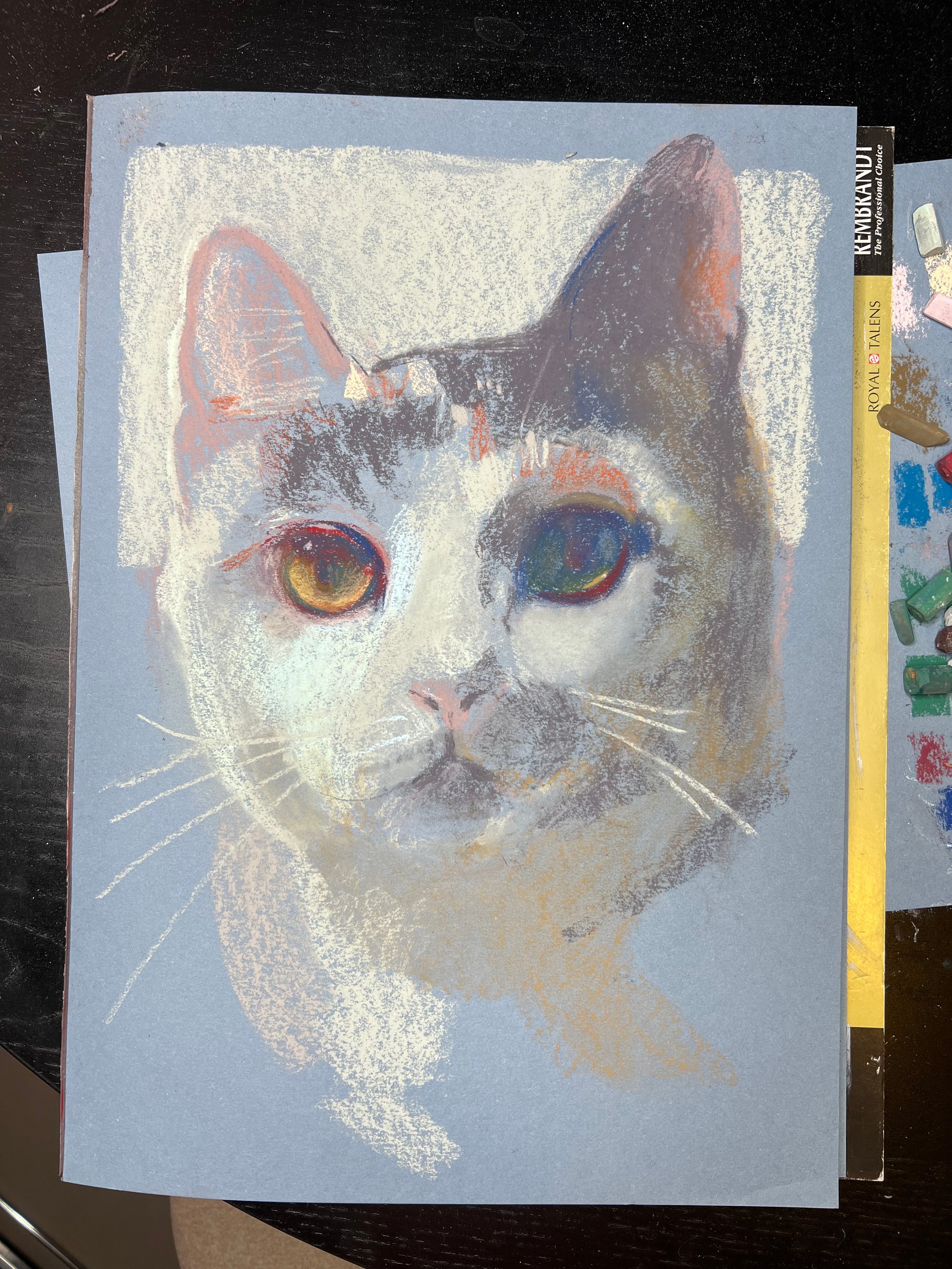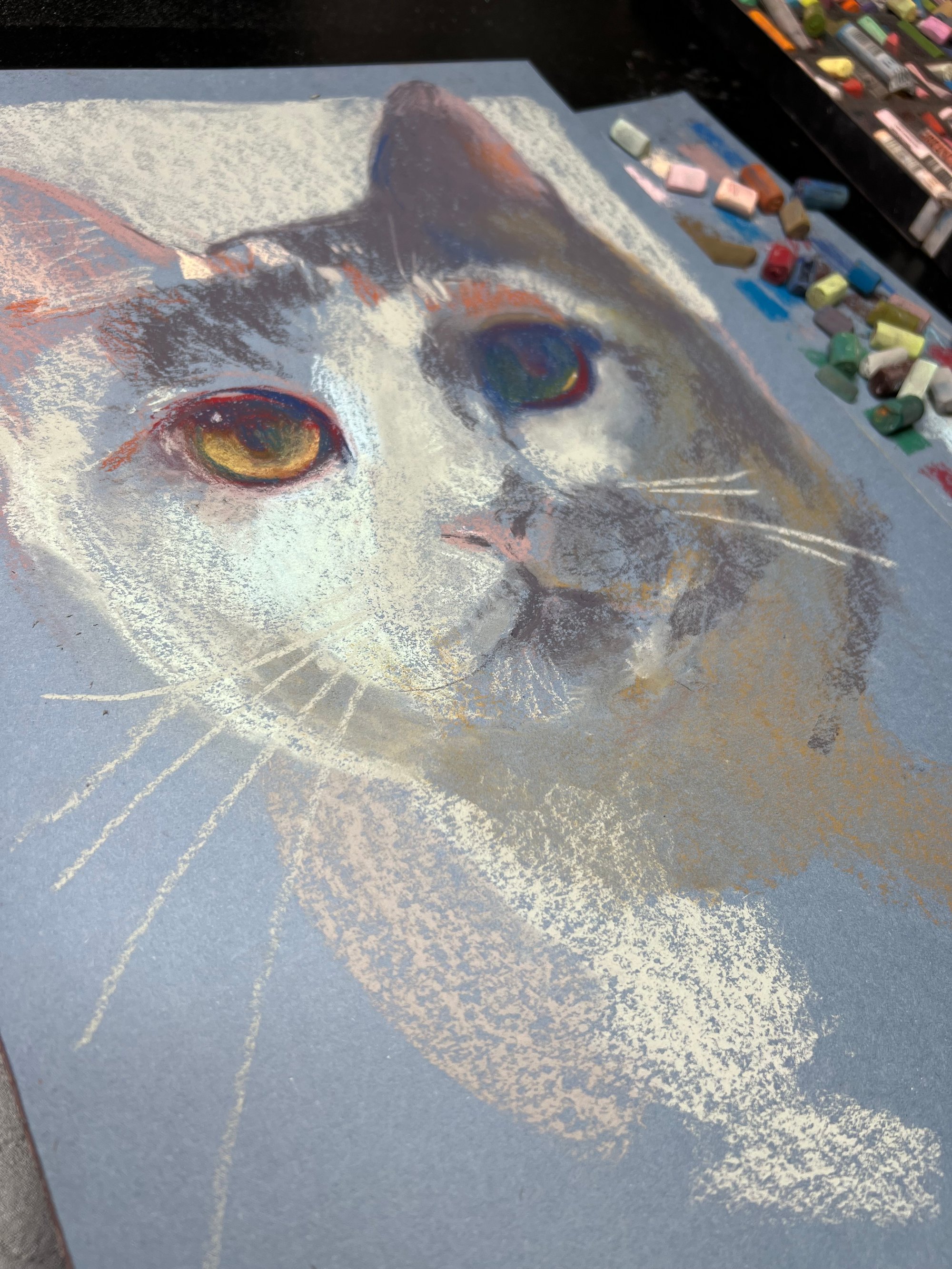 (UK and EUROPE Sales only) (EUROPE Sales - customer must research and pay any customs charges) Original drawing in Rembrandt soft pastels (Royal Talens) on mid-tone Rembrant 180gm paper at size 29x42cm. Part of the of the one time 60 at £60 studio clearance sale.
