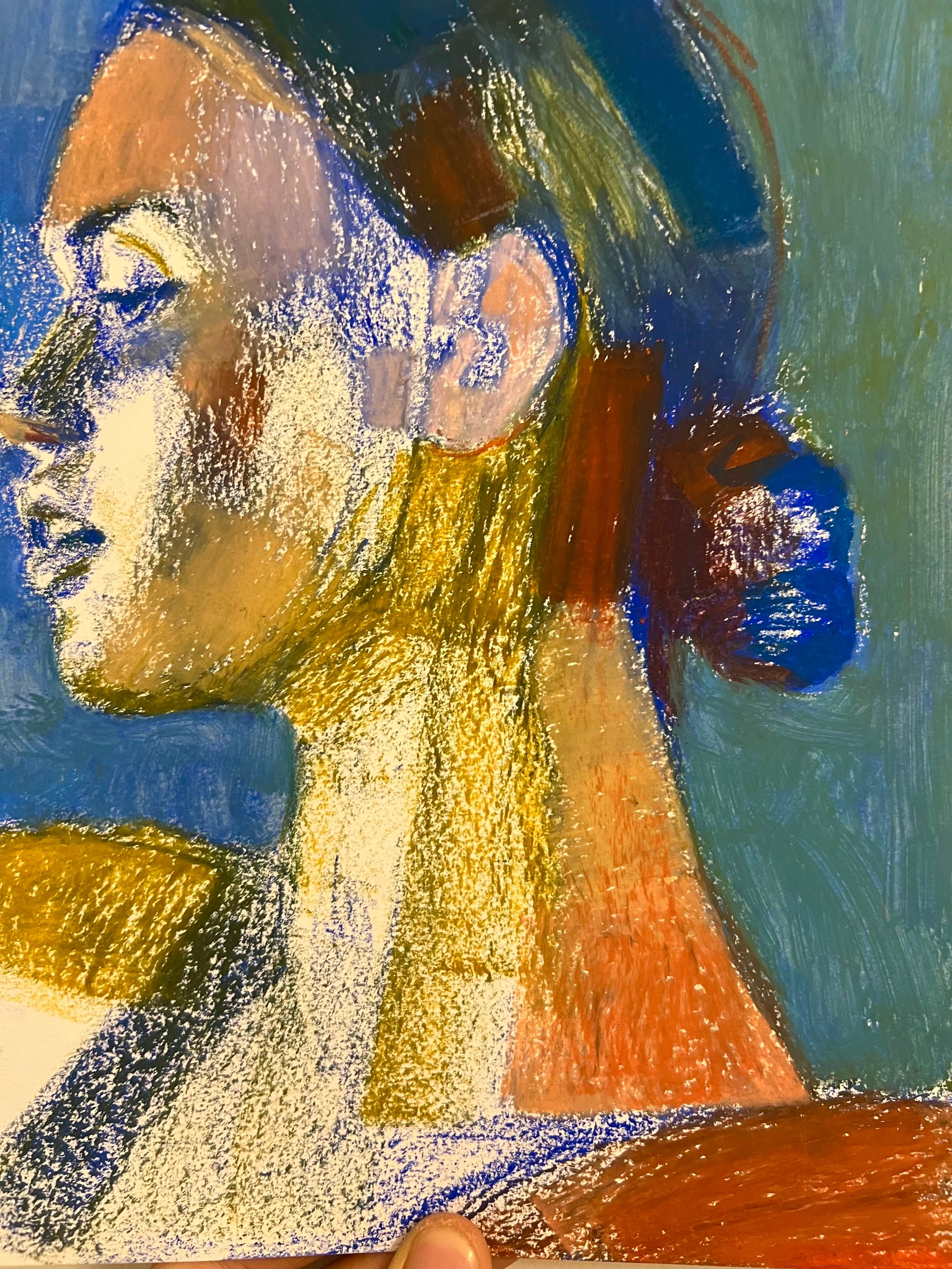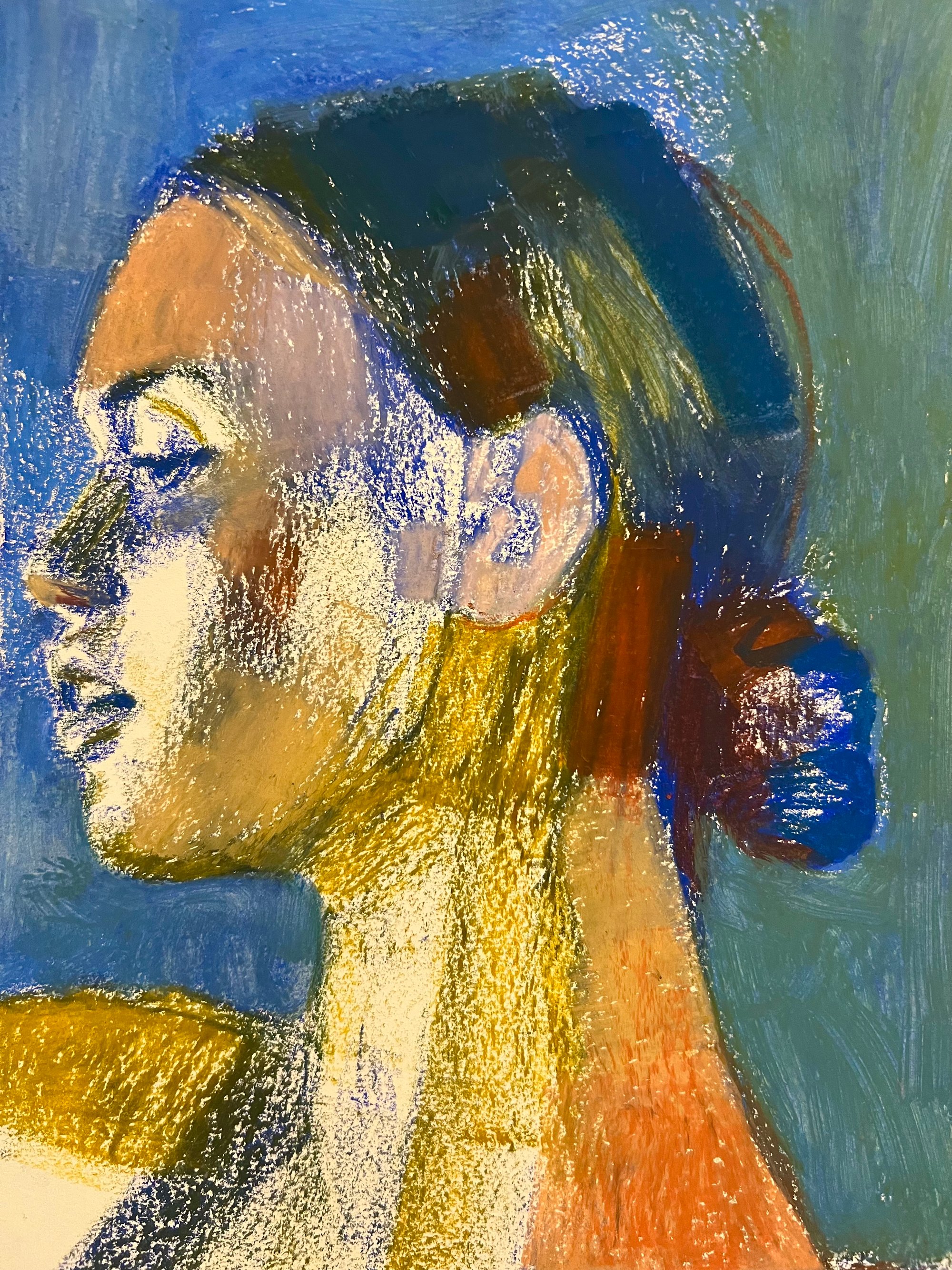 (UK and EUROPE and North America sales only) (EUROPE Sales - customer must research and pay any customs charges) Original oil pastel drawing on paper at size 29x19cm.